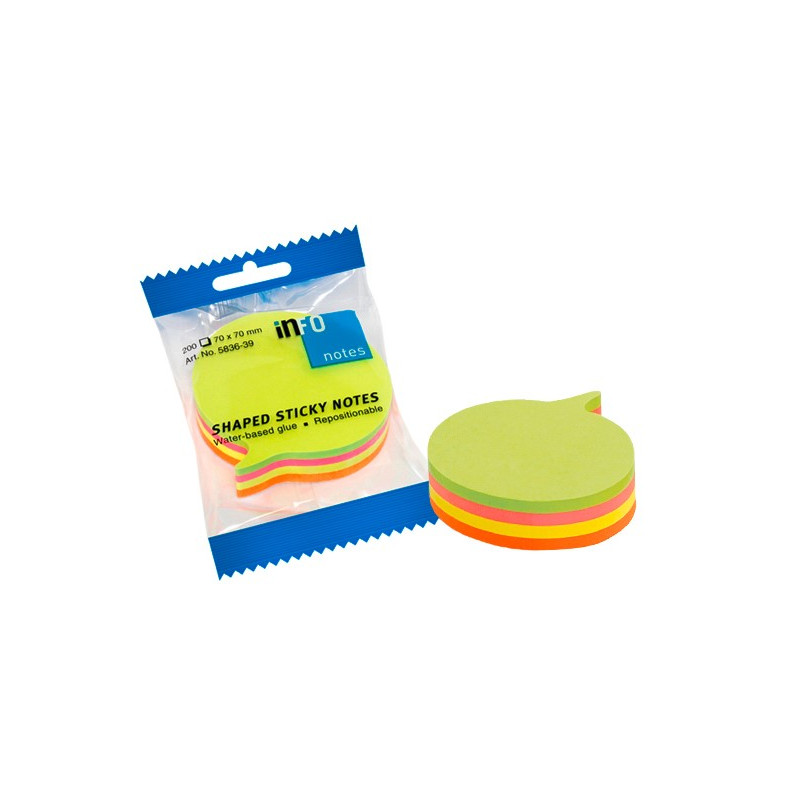 Samolepiace bločky, ktoré vďaka svojim farbám zabezpečia, aby bol Váš odkaz neprehliadnuteľný. Balíček obsahuje 200 listov, mix farieb: neónová ružová, neónová žltá, neónová zelená v tvare bublina. Rozmer 70 x 70 mm.