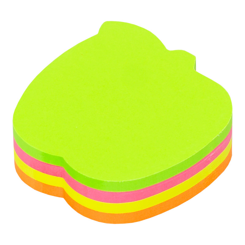 Samolepiace bločky, ktoré vďaka svojim farbám zabezpečia, aby bol Váš odkaz neprehliadnuteľný. Balíček obsahuje 200 listov, mix farieb: neónová ružová, neónová žltá, neónová zelená v tvare jablka. Rozmer 68 x 68 mm.