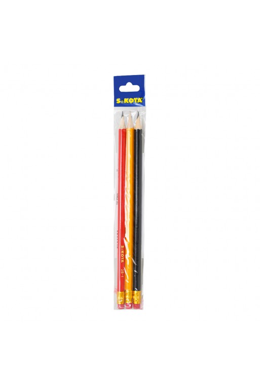 Ceruzka drevená, šesťhranná s tvrdosťou tuhy 2B, HB, 2H ukončená praktickou gumou. V balení sa nachádzajú 3ks ceruziek.