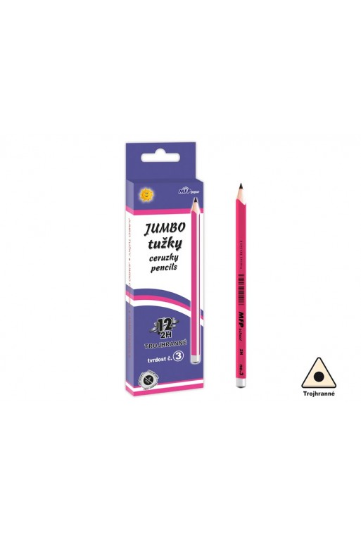 Trojhranná, grafitová ceruzka Jumbo JG001T tvrdosť č.3 (2H). Ceruzky majú veľmi dobré držanie vďaka ergonomickému trojhrannému dizajnu. Väčší priemer ceruzky zaručuje pohodlné uchopenie aj menším deťom. Na výrobu bolo použité vysoko kvalitné drevo, preto sa dajú bez problémov strúhať. Tuhy v týchto ceruzkách sú pevne spojené s drevom, aby sa nelámali. Dĺžka ceruzky: 175 mm. Priemer tuhy: 4 mm. Šírka ceruzky: 10 mm