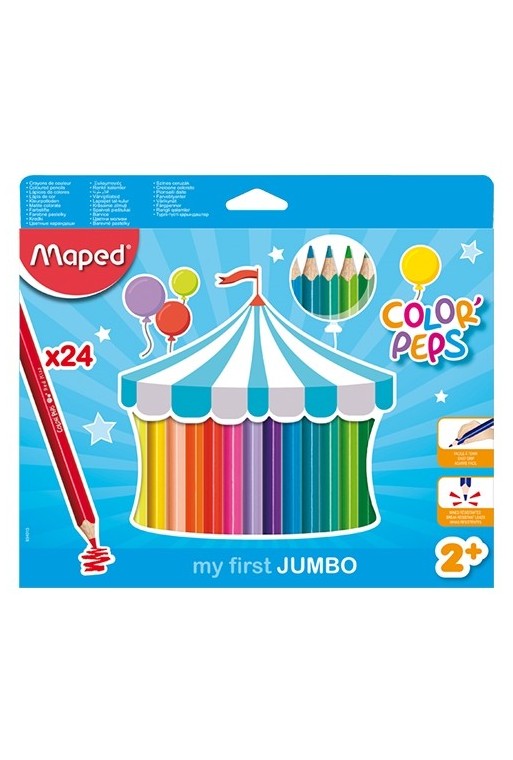 Hrubé farebné pastelky 24 ks vhodné pre deti od 3 rokov. Ergonomické tužkové pastelky s trojuholníkovým prierezom a širokou škálou farieb. Pastelky obsahujú mäkkú odolnú tuhu. Priemer tuhy je 5 mm. Tuha sa ľahko ostrí, neštiepi sa.