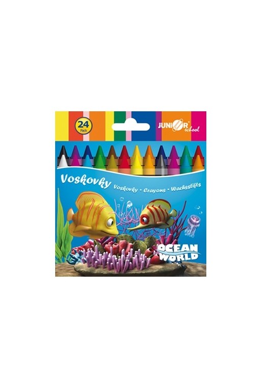 Voskovky klasického vyhotovenia v jasných, sýtych farbách, ktoré vyhovejú rozmanitým potrebám detí. Voskovky umožňujú hladké a komfortné kreslenie. Výborne farbia na papier, kartón, kameň a sú určené pre školákov aj predškolákov. Voskovky sú netoxické. Balenie obsahuje 24 kusov.