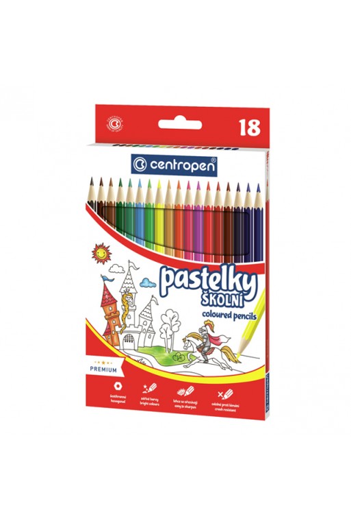 12-kusová sada šesťhranných pasteliek Scala, ktoré sa vyznačujú dobrou krycou schopnosťou, s plastovým telom, s mechanikou na vysúvanie farebnej tuhy, dodávaná v plastovom boxe spolu so strúhadlom. Dĺžka pastelky 137 mm, priemer pastelky 7,5 mm. Dĺžka Jadra (tuhy) pastelky 9 mm, priemer Jadra pastelky 3,2 mm.