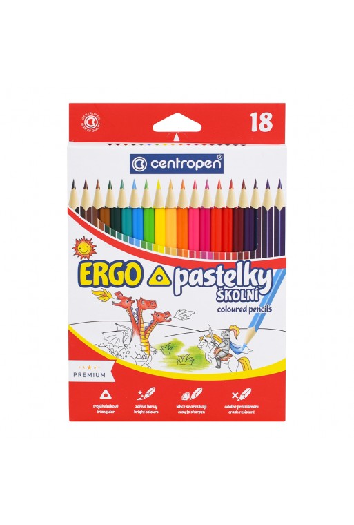 Drevené farebné pastelky sýtych farieb, ktoré vyhovejú rozmanitým potrebám detí. Klasický šesťhranný tvar, určené pre školákov aj predškolákov. Pastelky nemajú na tele žiadne logo výrobcu. Sada obsahuje 12 kusov, balené v papierovej krabičke.