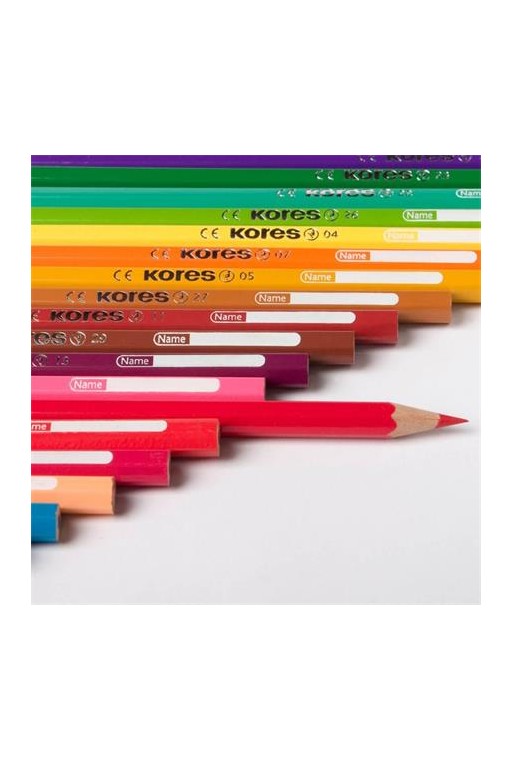 Drevené farebné pastelky sýtych farieb, ktoré vyhovejú rozmanitým potrebám detí. Klasický šesťhranný tvar, určené pre školákov aj predškolákov. Pastelky nemajú na tele žiadne logo výrobcu. Sada obsahuje 12 kusov, balené v papierovej krabičke.
