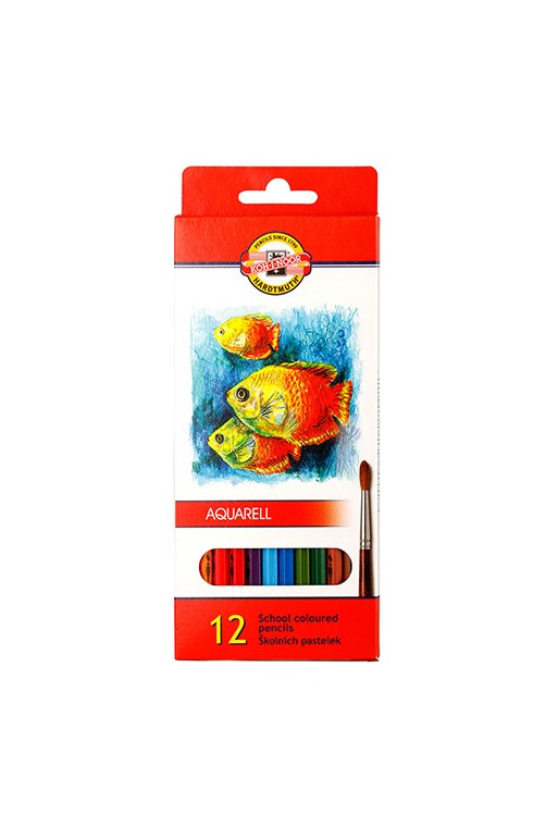 12-kusová sada akvarelových pasteliek s dreveným telom štandardnej kvality, dodávaná v papierovom boxe s eurozávesom. Školské ( nemáčané ) akvarelové pastelky AQUARELL s vodou rozmývateľným efektom, dĺžka pastelky 175 mm, hrúbka pastelky 6,5 mm, hrúbka tuhy 3 mm.