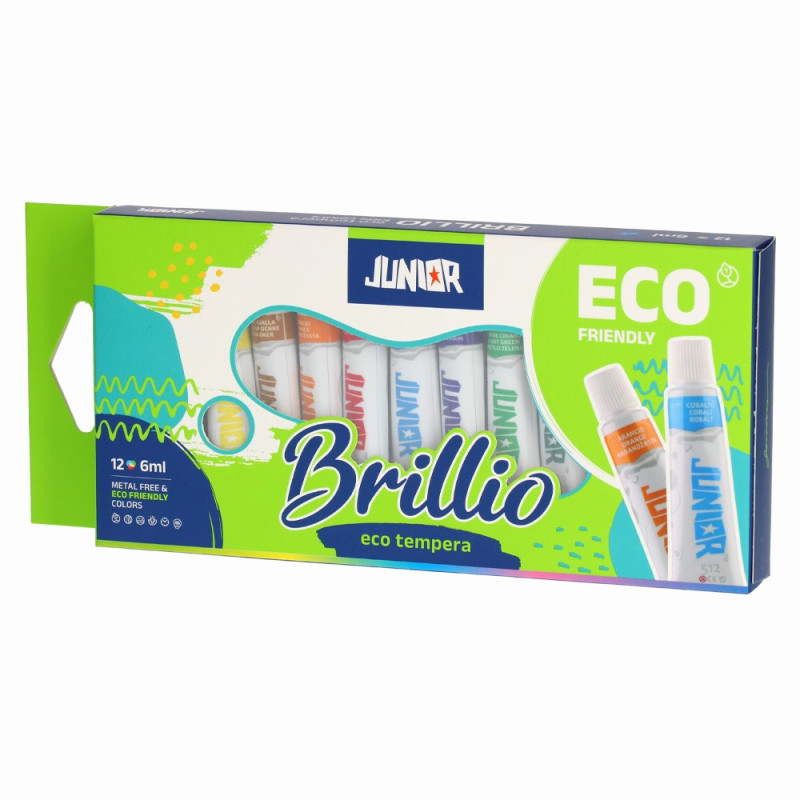 Súprava temperových farieb. Temperové farby sú balené po 12 farbách v papierovej škatuľke. Balenie obsahuje svetlomodrú, tmavomodrú, svetlozelenú, tmavozelenú, svetložltú, tmavožltú, svetločervenú, tmavočervenú, svetlohnedú, tmavohnedú, bielu a čiernu farbu. Tieto farby sa vyznačujú vysokými krycími vlastnosťami a kvalitou, neobsahujú žiadne toxické látky. Sú ideálne pre školské i hobby použitie.Obsah farby v jednej tube: 12 mlRozmery balenia: 100x215x20 mmVarovanie: Nevhodné pre deti do 3 rokov. Nebezpečenstvo prehltnutia malých častí.