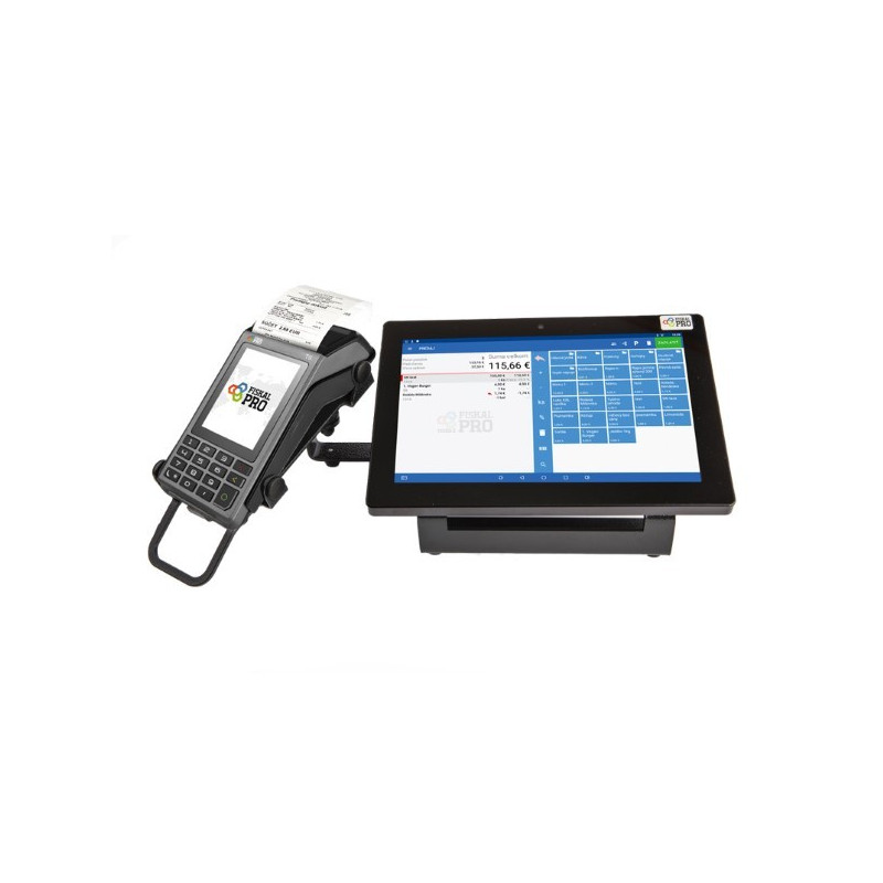 Android dotyková pokladničná zostava so zariadením FiskalPRO T6.Pokladničné riešenie s Android aplikáciou FiskalPRO Mobile vhodné pre pevné prevádzky, predaj tovaru a služieb. Uchytenie tabletu a platobného terminálu s fiskálnou tlačiarňou v kompaktnom, masívnom a stabilnom BASIC stojane. Možnosť pripojenia externých zariadení/periférií (skener čiarových kódov, peňažná zásuvka, váha).