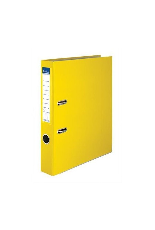 Poradač formátu A4 s kvalitnou pákovou mechanikou, potiahnutý fóliou so štruktúrou plátna. Vybavený chrbtovým krúžkom, vreckom s vymeniteľným chrbtovým štítkom a uzatváracím mechanizmom. Šírka chrbta 5 cm. Farba: žltá