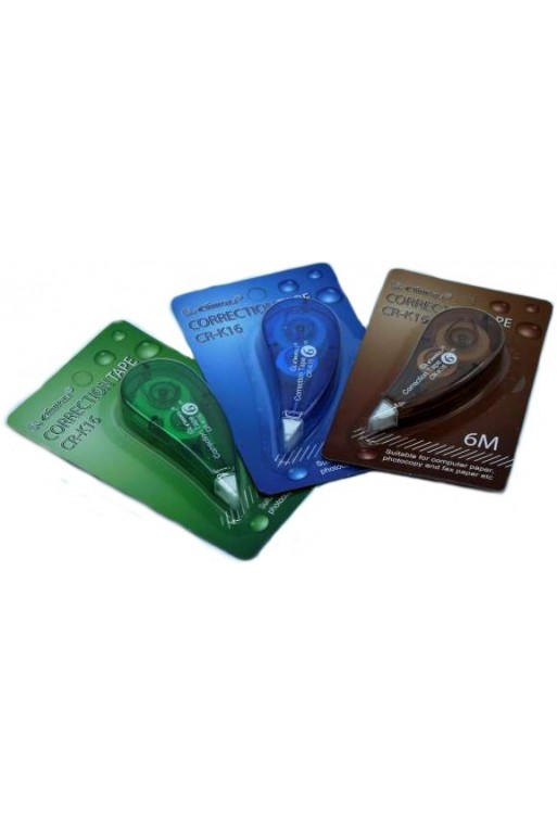 Korekčná páska – Chcete skryť na papieri niečo, čo ste nechceli napísať? Stačí vám na to korekčná páska!- netoxická- rýchla a čistá aplikácia- bezprostredná možnosť prepísania- šetrná k životnému prostrediu- bez zápachu NÁVOD:1. Umiestnite hrot na miesto, ktoré chcete opraviť a ťahom ho zabieľte. 2. Oprava bude efektívnejšia, ak dokument podložíte papierom alebo hladkou podložkou. 3. Neskladujte pásku pri vysokej teplote a na vlhkom mieste. Chráňte pred slnkom.