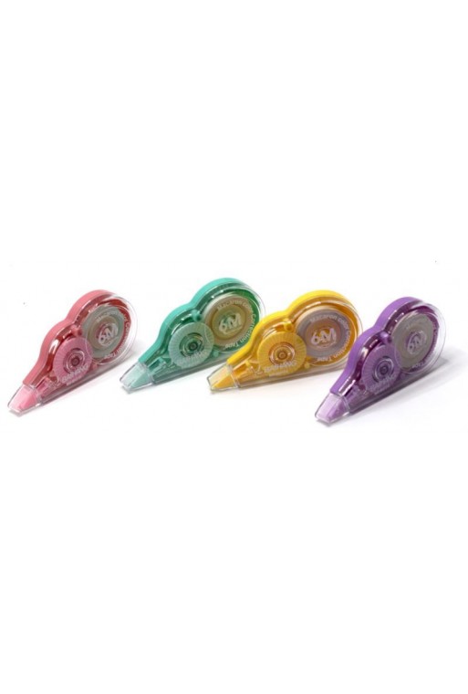 Mini korekčný strojček umožňujúci pohodlné a čisté nanášanie suchého korekčného filmu.- šírka pásky 5 mm, návin 5 m- 2 farby v balení: ružová, tyrkysová