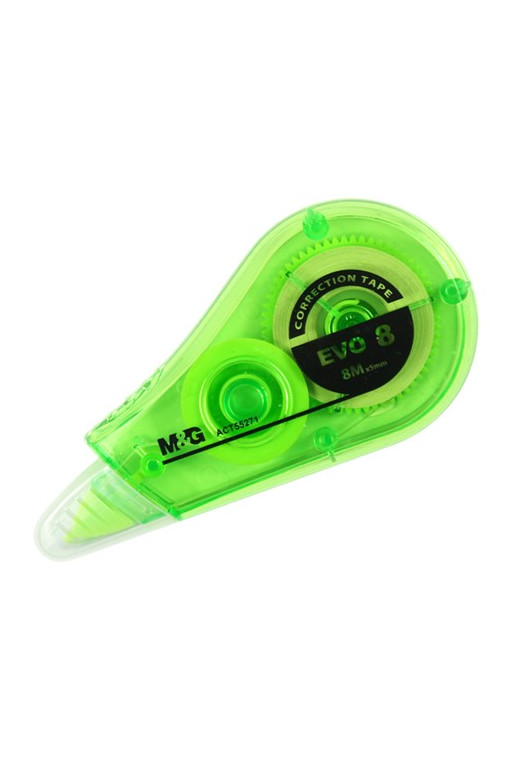 Korekčný strojček s aplikačným hrotom, umožňujúcim pohodlné a čisté nanášanie suchého korekčného filmu.