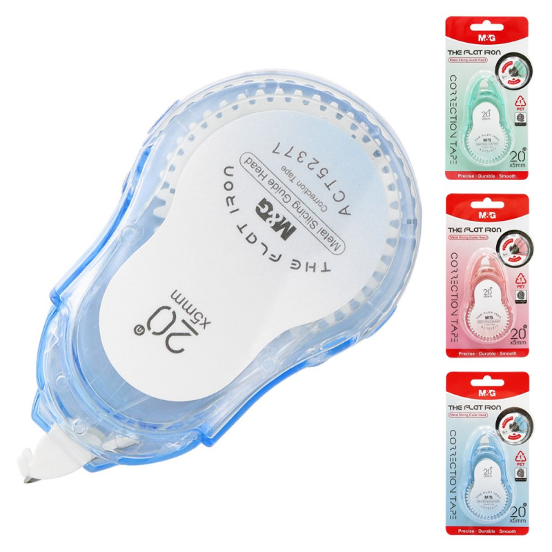 Precízny korekčný strojček s kovovou nanášacou hlavou, umožňujúcim pohodlné a čisté nanášanie suchého korekčného filmu. Šírka pásky 5 mm, návin 20 m. Rozmer strojčeka: 85 x 50 x 15 mm. Priehľadné farby: ružová, modrá, zelená. Dodávaný na blistri