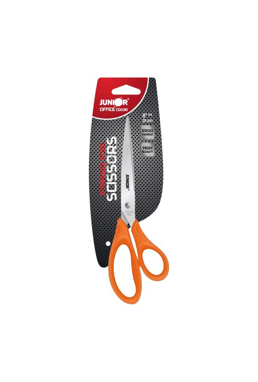 Nožnice s asymetrickými rukoväťami z PVC v kombinácii so silikónom poskytujúce komfortné uchopenie. Dĺžka nožníc 16,5 cm, dodávané v čierno-červenej farebnej kombinácii, na blistri. Rozmer: 165x65 mm, 68 mm čepeľ.