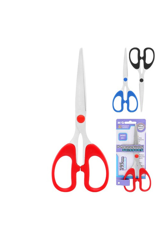 Kancelárske nožnice Office Precision M&G s ergonomicky tvarovanou plastovou rukoväťou pre pohodlný úchop. Čepeľ nožníc z kvalitnej nehrdzavejúcej ocele. Dĺžka čepele 80 mm. Kvalitné, cenovo dostupné nožnice v troch farebných prevedeniach