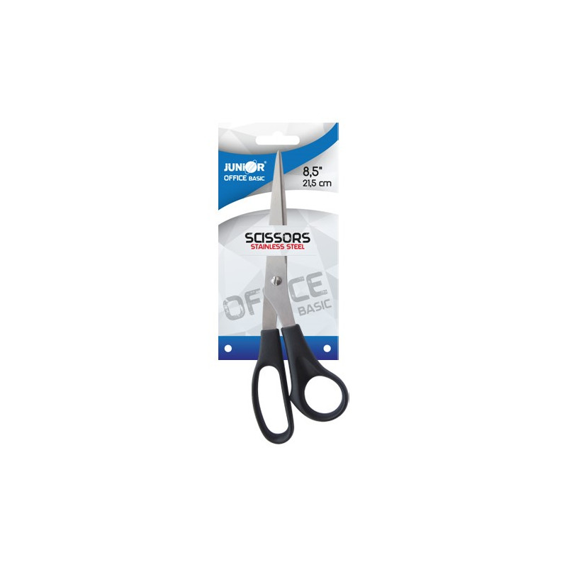 Kancelárske nožnice s ergonomicky tvarovanou plastovou rukoväťou pre pohodlný úchop. Čepeľ nožníc z kvalitnej nehrdzavejúcej ocele. Dĺžka čepele 50mm.