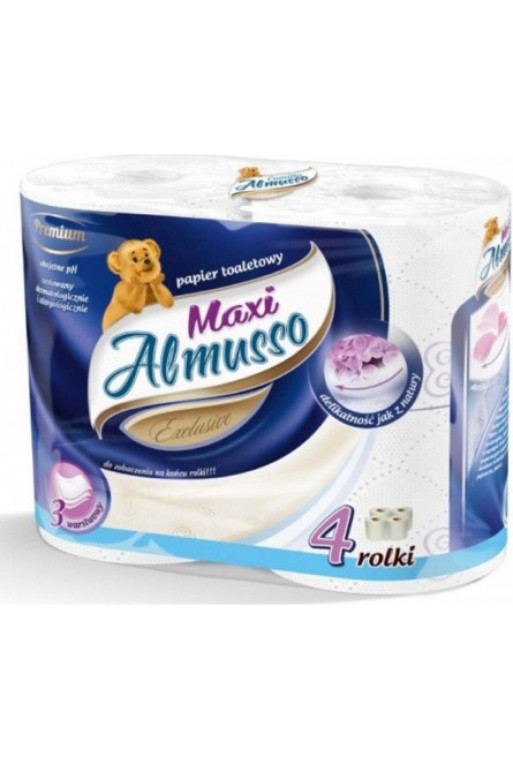 ALMUSSO MAXI TOALETNÝ 3-VRTSTVOVÝ PAPIER - 4 ks 3 - vrstvový toaletný papier, vyrobený zo 100% čistej celulózy.