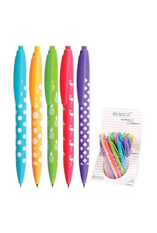 Guľôčkové pero s názvom FLAMINGOS. Má plastové telo ale s atraktívnym dizajnom plameniaka. Je dokonca aj v troch farebných kombináciách.Obsahuje SEMI-GEL náplň, čo znamená, že je na báze oleja. Konzistenčne je medzi klasickou guľôčkovou náplňou a gélovou náplňou.Priemer hrotu pera je 0,5 mm