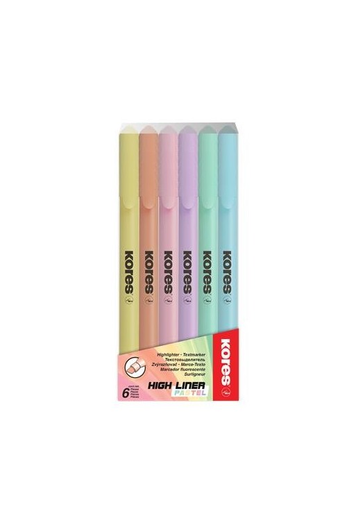 Sada zvýrazňovačov v modernom dizajne pre hladké a pohodlné zvýraznenie textu na všetkých druhoch papiera. Klinový hrot, šírka stopy 1-5 mm.