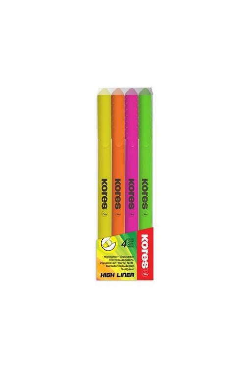 Zvýrazňovač plnený reflexným atramentom na vodnej báze, vhodný na písanie na všetky druhy papiera. Klinový hrot, šírka stopy 1 - 4 mm. Cena za 4-kusovú sadu.