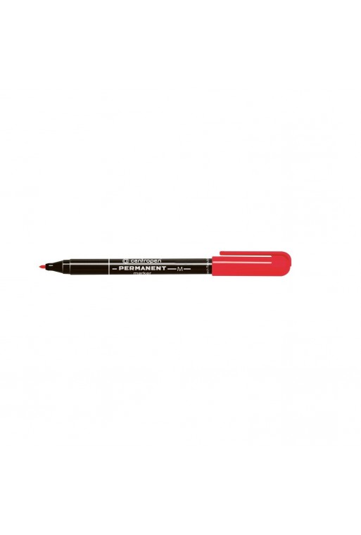 Popisovač s permanentným atramentom na alkoholovej báze, s valcovitým hrotom, šírkou stopy 2,5 mm - stopa písma je odolná voči vode, teplote do 100°C, oteru a poveternostným vplyvom. Určený na písanie na neporézne materiály, plasty, sklo, gumu, kožu, kovy. Farba červená.