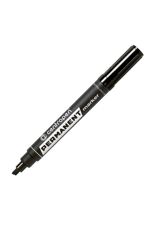 Popisovač s permanentným atramentom na alkoholovej báze, s klinovým hrotom, šírkou stopy 1 - 4,6 mm - stopa písma je odolná voči vode, teplote do 100°C, oteru a poveternostným vplyvom. Určený na písanie na neporézne materiály, plasty, sklo, gumu, kožu, kovy. Farba čierna.
