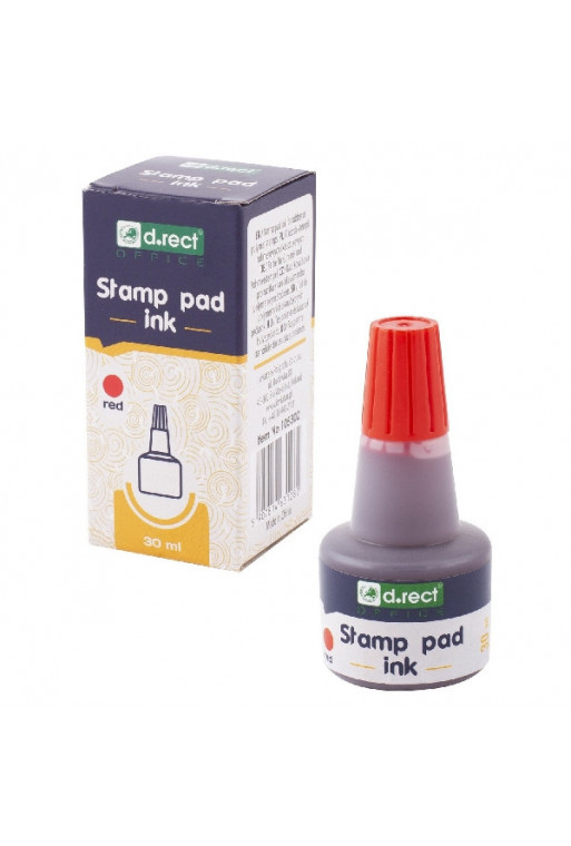 Pečiatková farba vodová červená 30ml s intenzívnou neblednúcou farbou pre gumové a polymérove pečiatky. Po zaschnutí sa tuš nerozpúšťa vo vode. Špička na fľaši umožňuje napúšťanie podušiek.