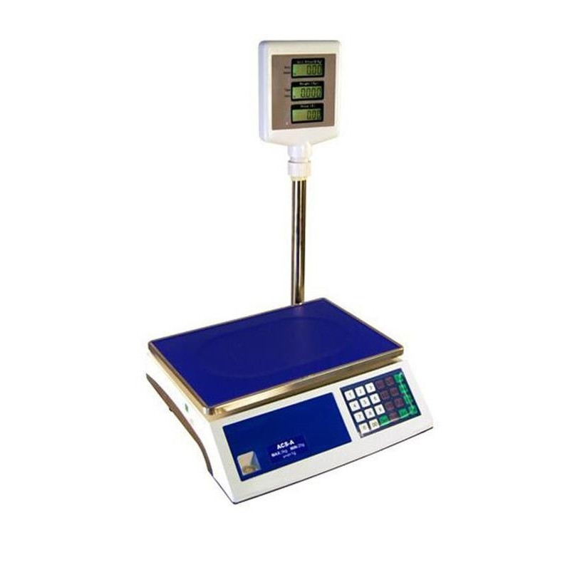 0911416660Obchodná digitálna váha s výpočtom ceny, so zabudovaným akumulátorom, s IP-67 proti prachu, múke, vodotesná. Účtovanie možné len priamo na váhe.