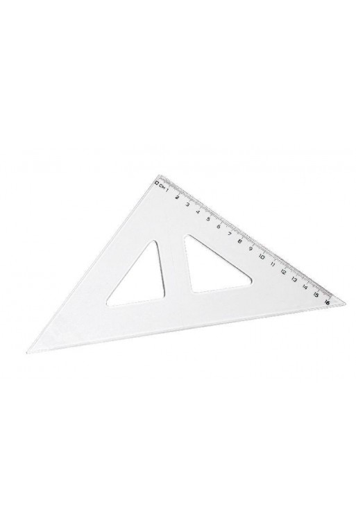 Veľký uhlomer 180° so 120 mm pravítkom; vyrobený z transparentného PVC.