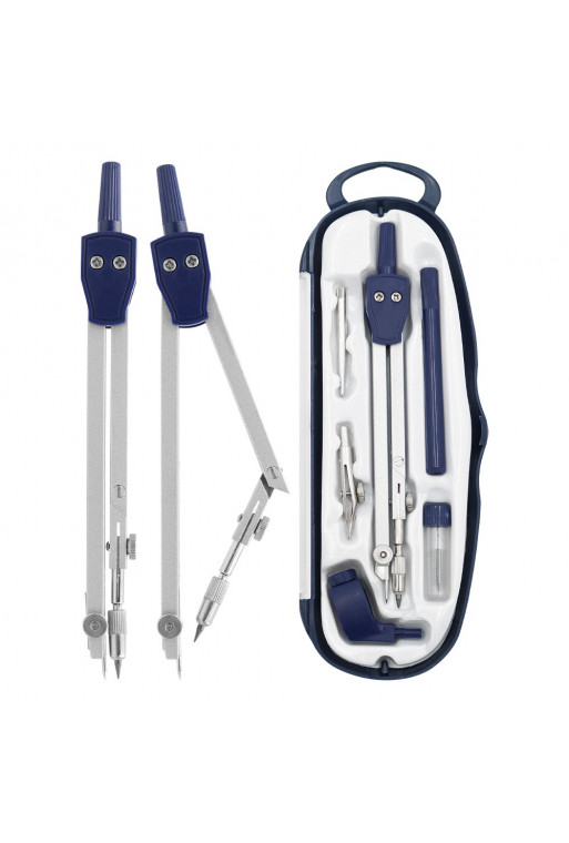 0911416660Školské kružidlo z kovu v kombinácii s plastom, balené v plastovom puzdre, s náhradnými ceruzkovými tuhami a príslušenstvom.