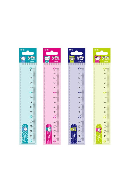 Školské pravítko – dĺžka 15 cm, vyrobené z transparentného pevného PVC. Dodávané v plastovom puzdre