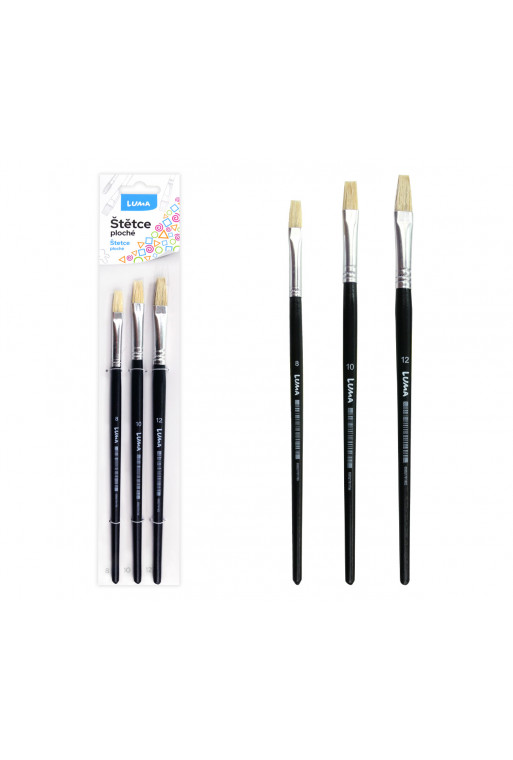 - prírodný materiál- lakovaná rukoväť s bezšvovou hliníkovou púzdrom- vhodné na maľbu vodovkami, temperami, akvarelovými aj olejovými farbami- vhodné pre školákov, predškolákov aj pre umelcov- v sade ploché štetce č. 6, 10, 12