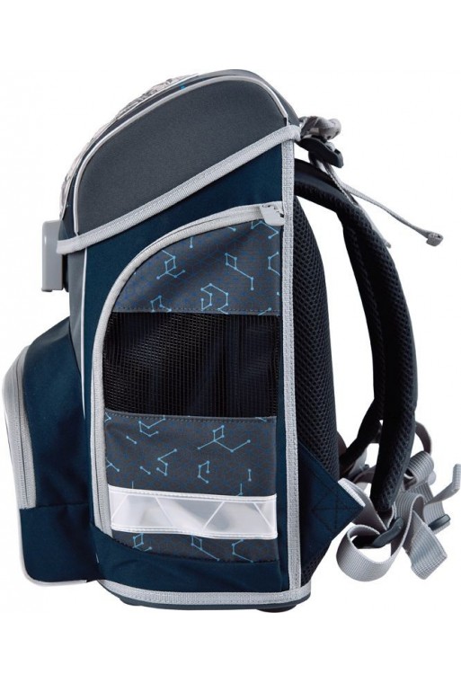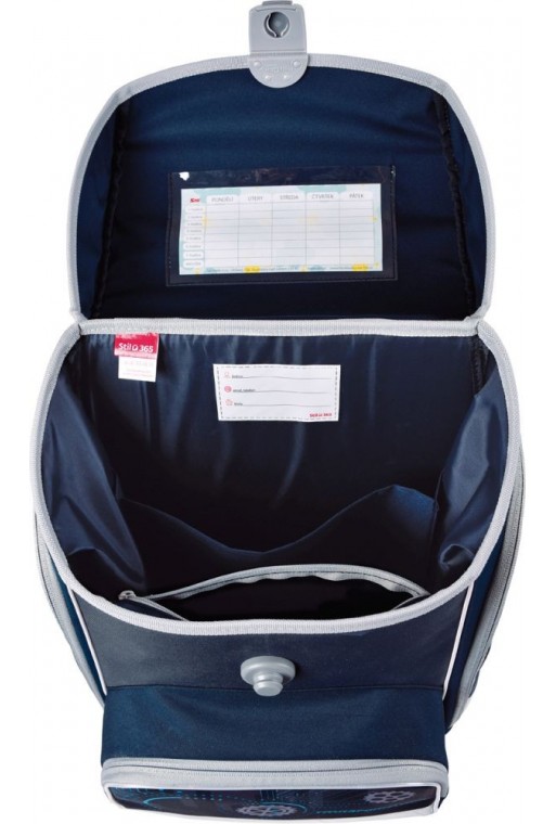 Školská chlapčenská aktovka ladená do šedo-modrej farby s obrázkom robota vhodná pre 1. až 3. triedu základnej školy. Chrbát tašky je anatomicky tvarovaný, s priedušným polstrovaním Air flow umožňujúcim cirkuláciu vzduchu. Vnútorná časť aktovky je rozdelená textilnou prepážkou. Bočné vrecká so zipsovým zapínaním sú ideálne na fľašu s pitím, predné vrecko na desiatový box. Prídavné ramenné popruhy umožňujú lepšie usadenie aktovky na chrbte, hrudná páska zaručí rovnomerné rozloženie váhy tašky na chrbte.