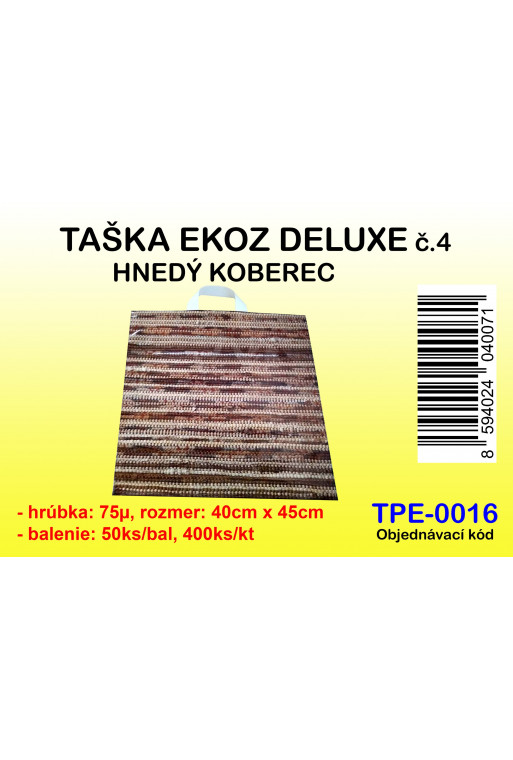 Papierová taška, ktorú len tak niečo neroztrhne. Vyrobená z tvrdeného papiera.Taška vyrobená zo stopercentnej celulózy, vrstvených lepeniek a recyklovaného papiera. Ideálna pre každého, kto chce byť šetrný voči prírode. Recyklovaný papier je jednou zo zložiek, ktorá sa v prírode ľahšie rozkladá a tiež je možné z nej vytvoriť ďalší nový výrobok. Hodí sa do reštaurácií, jedální, škôl, nemocníc, domácností, tiež na rôzne typy podujatí ako napríklad jarmoky, oslavy, cateringové akcie, festivaly.Rozmer: 40 + 16 x 45 cm